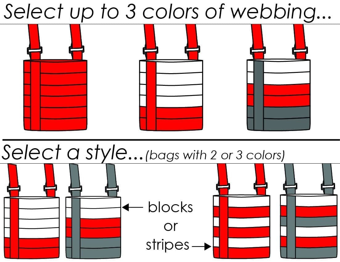 — a combined total of 6 yards of seat belt webbing in your choice of 1 to 3 colors – enough webbing to make one bag