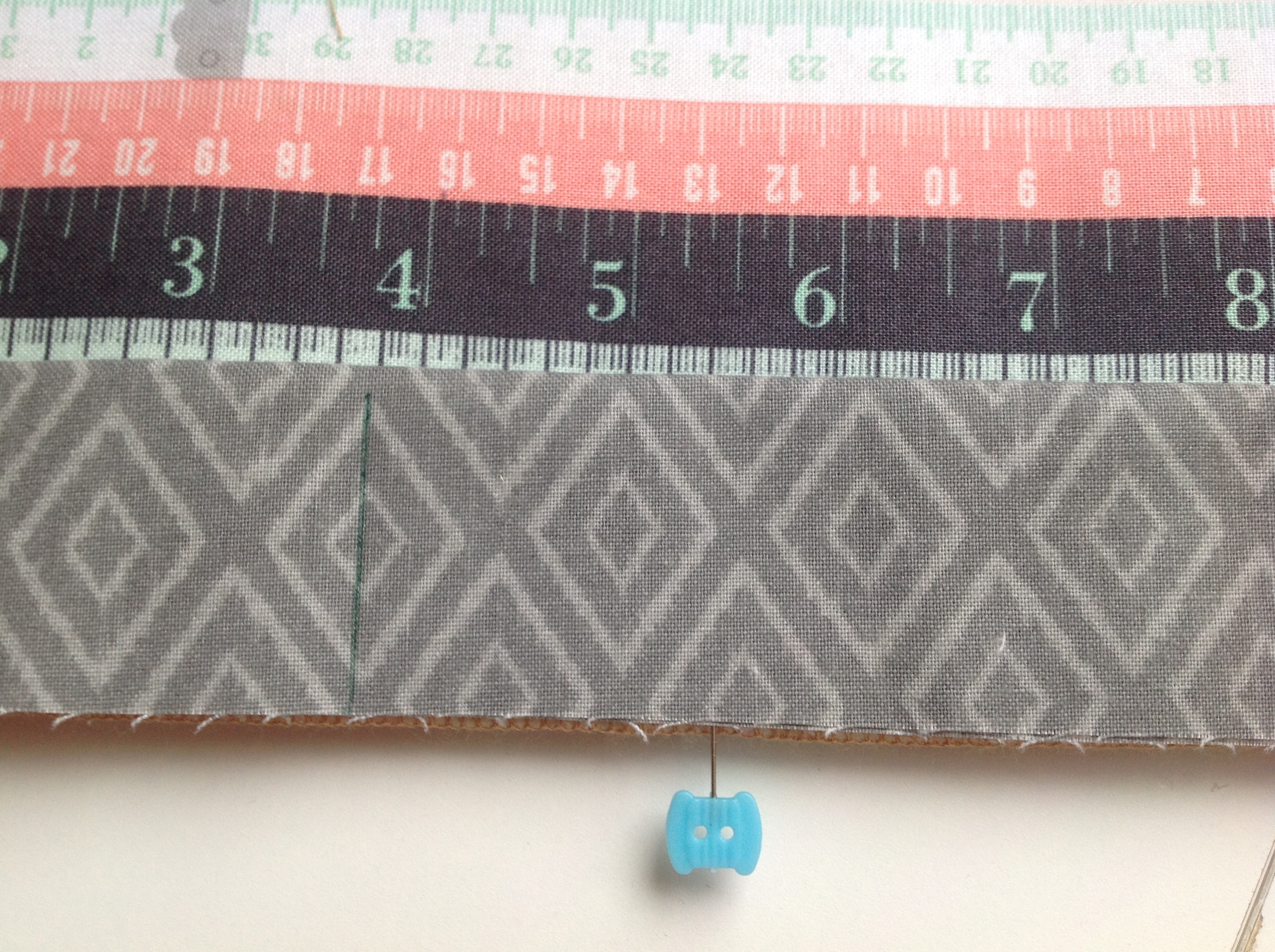 Now, start stitching about 3 or 4″ before that right corner pin. Stop stitching right at the pin and be sure to backstitch! Here’s how we are going to handle the corners…