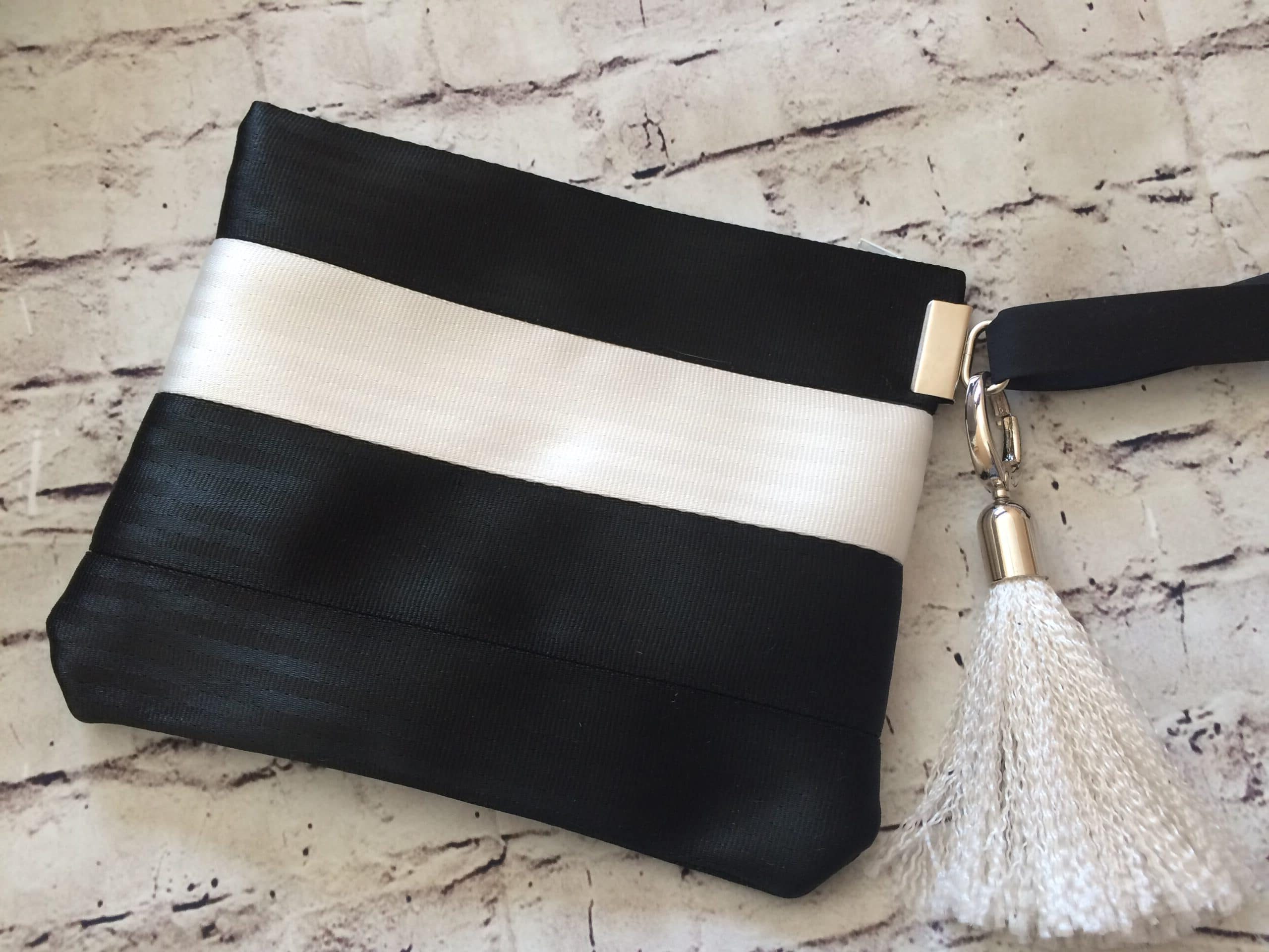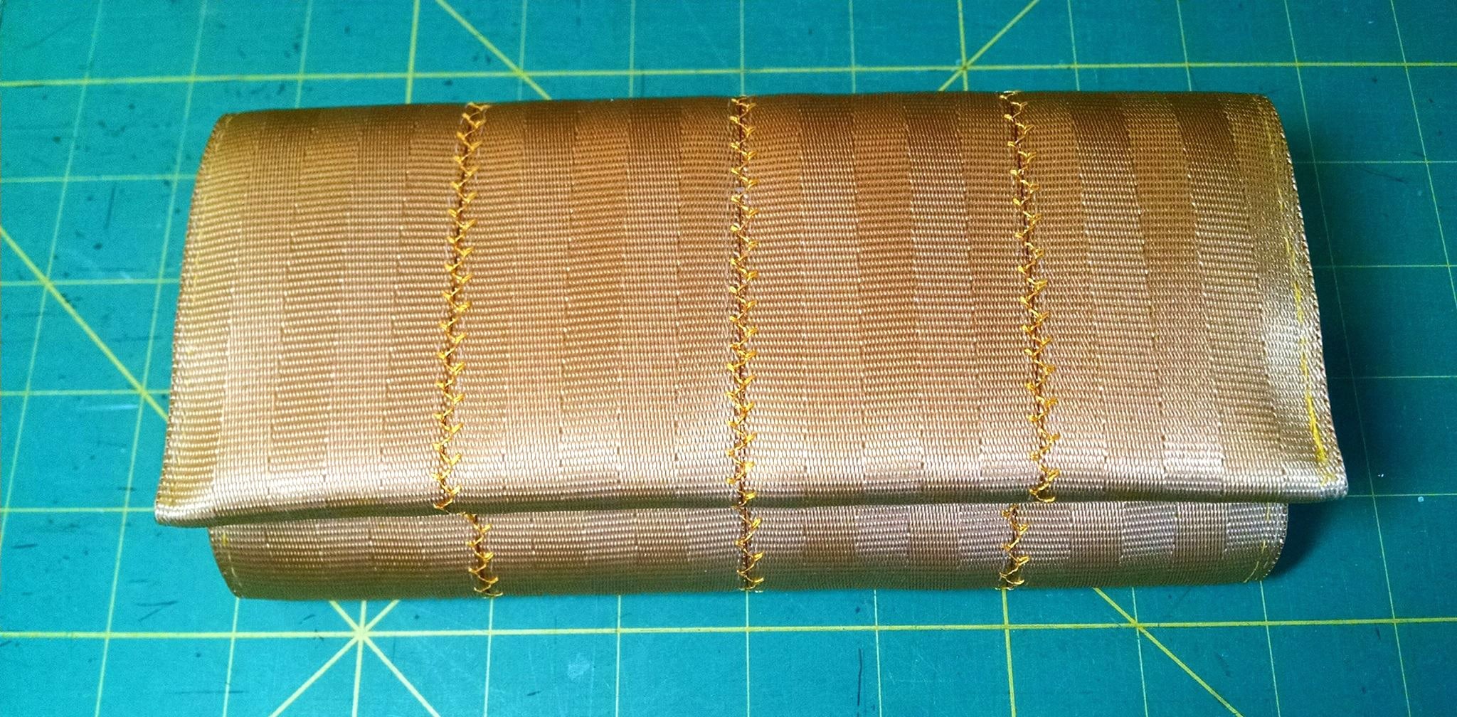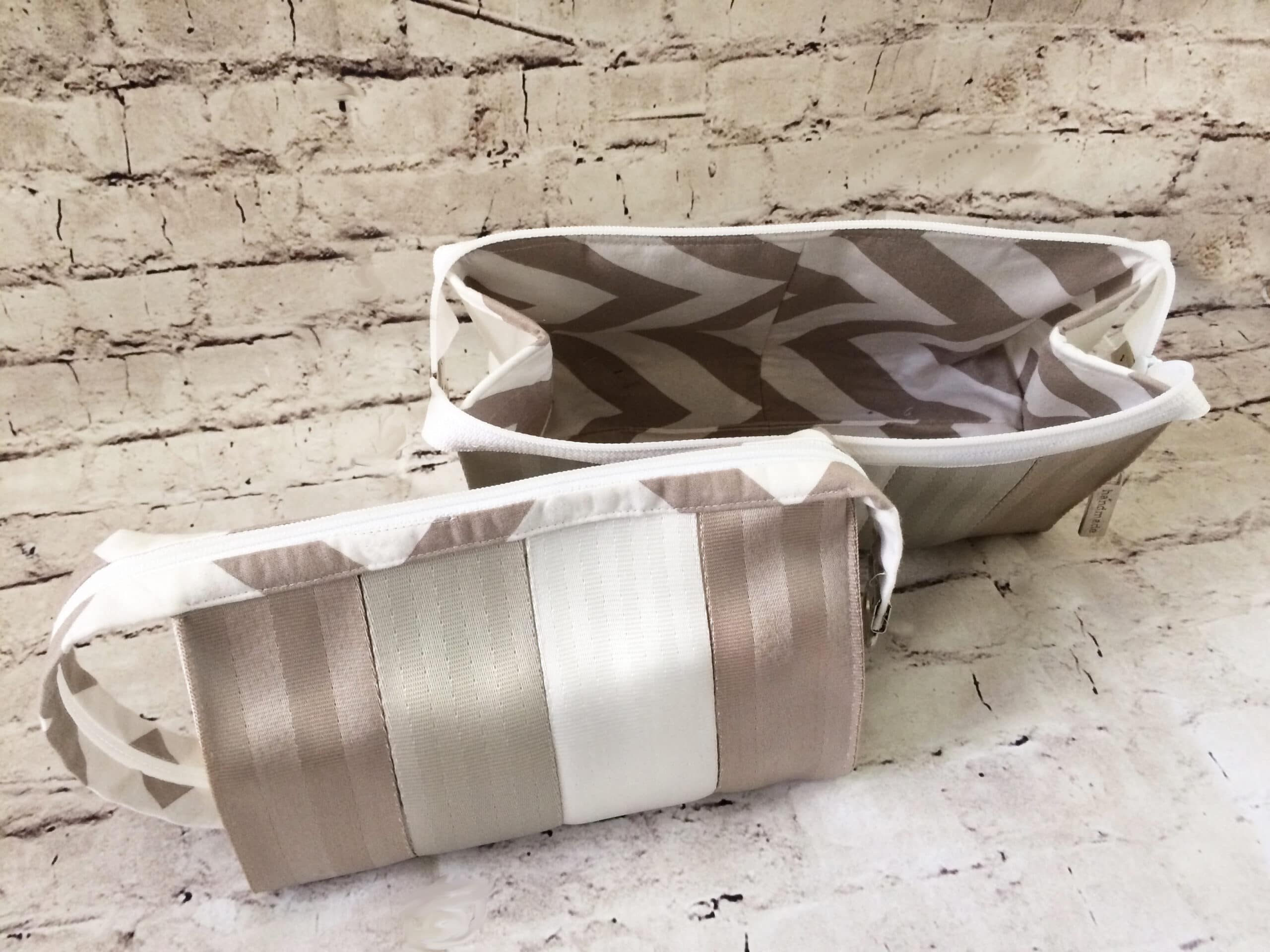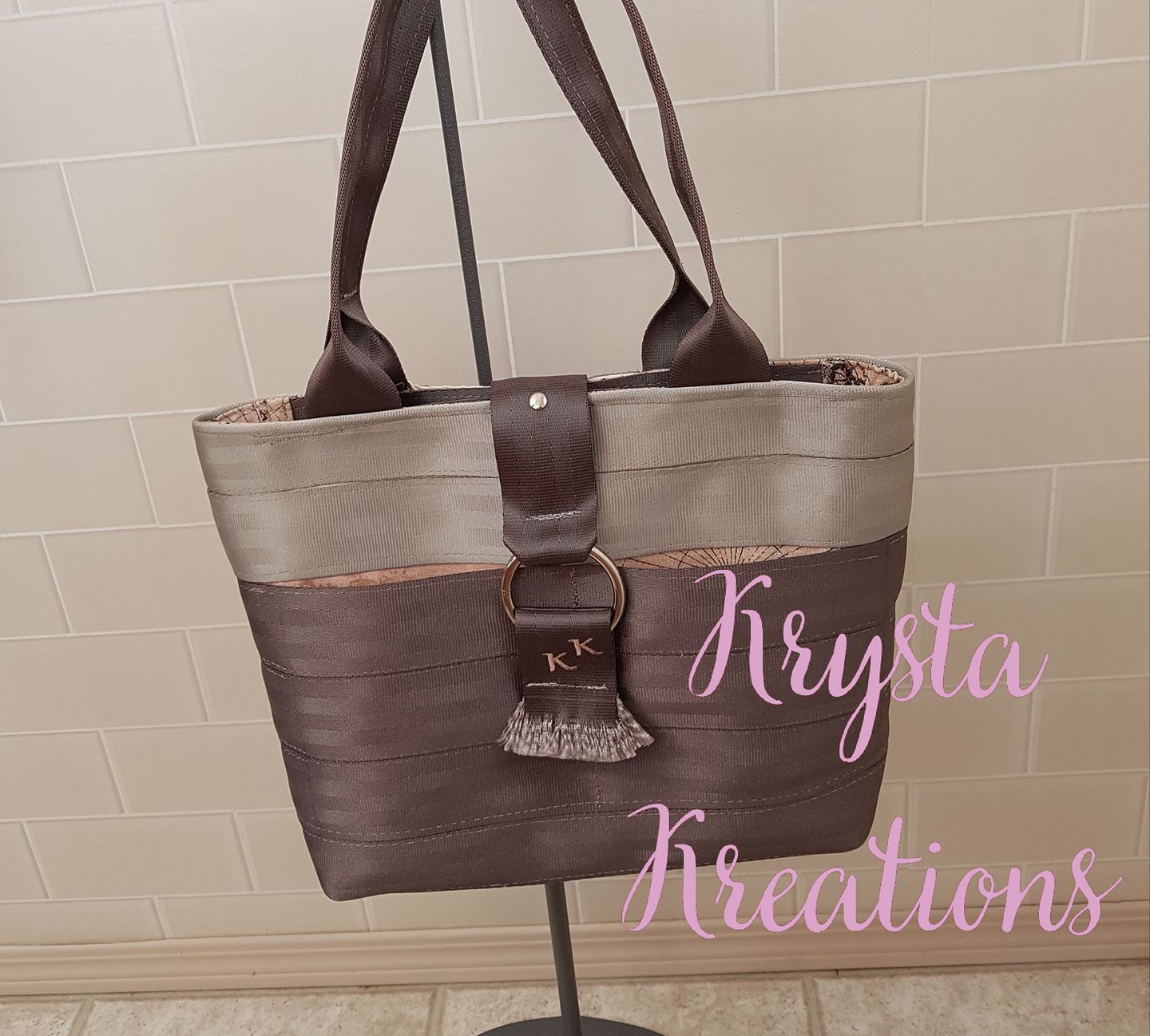 - medium in butter, copper and chocolate seat belt webbing with matching cosmetic bag!