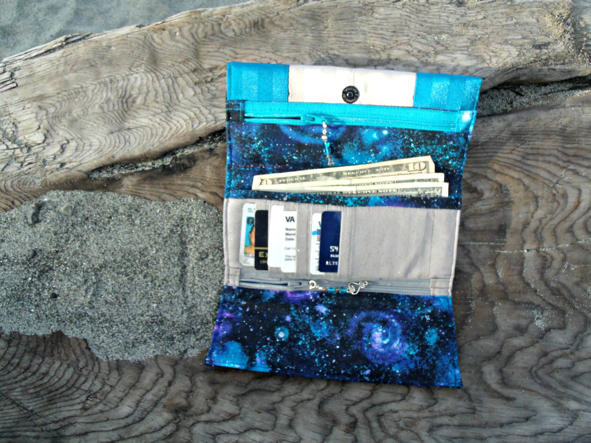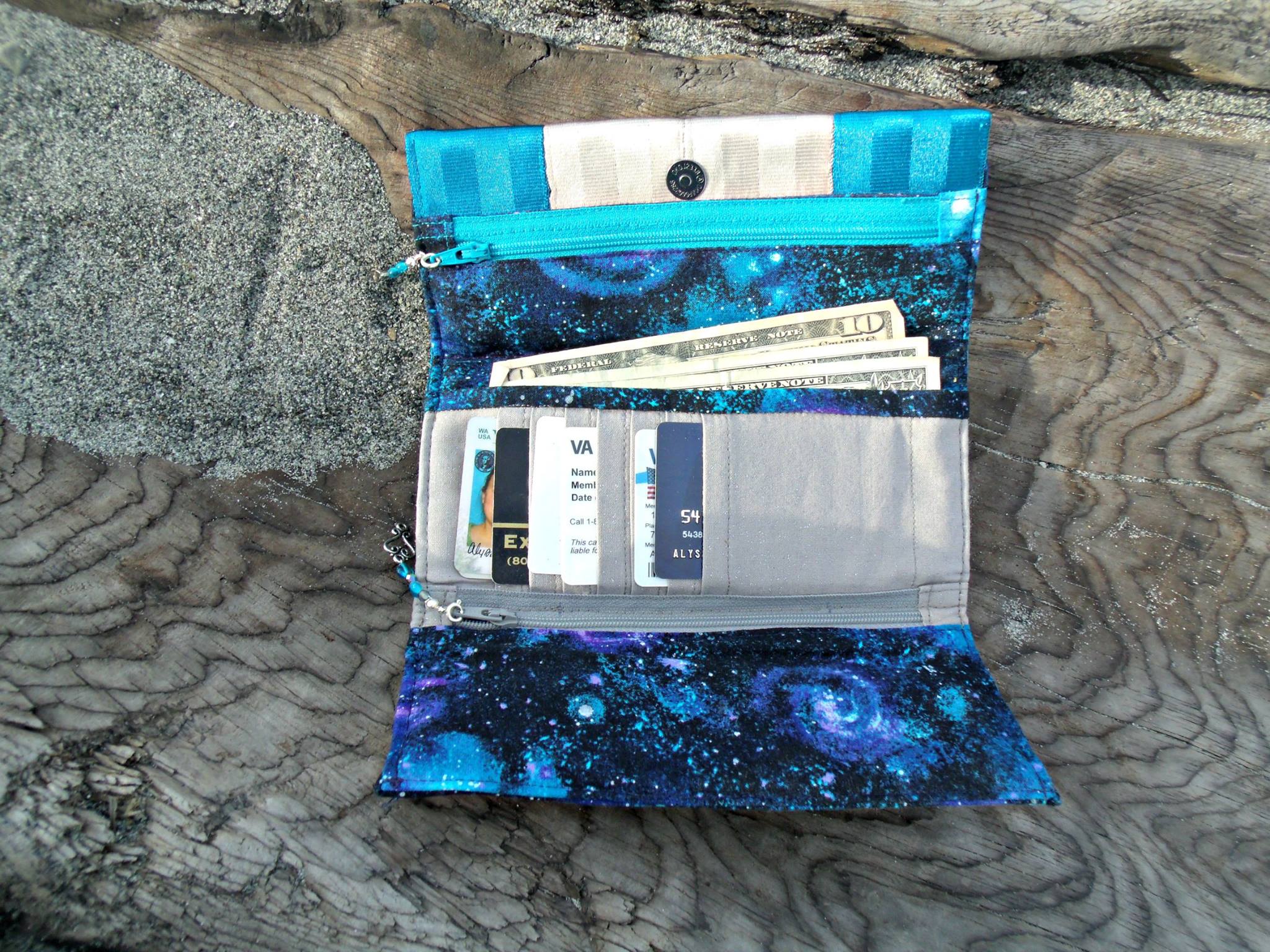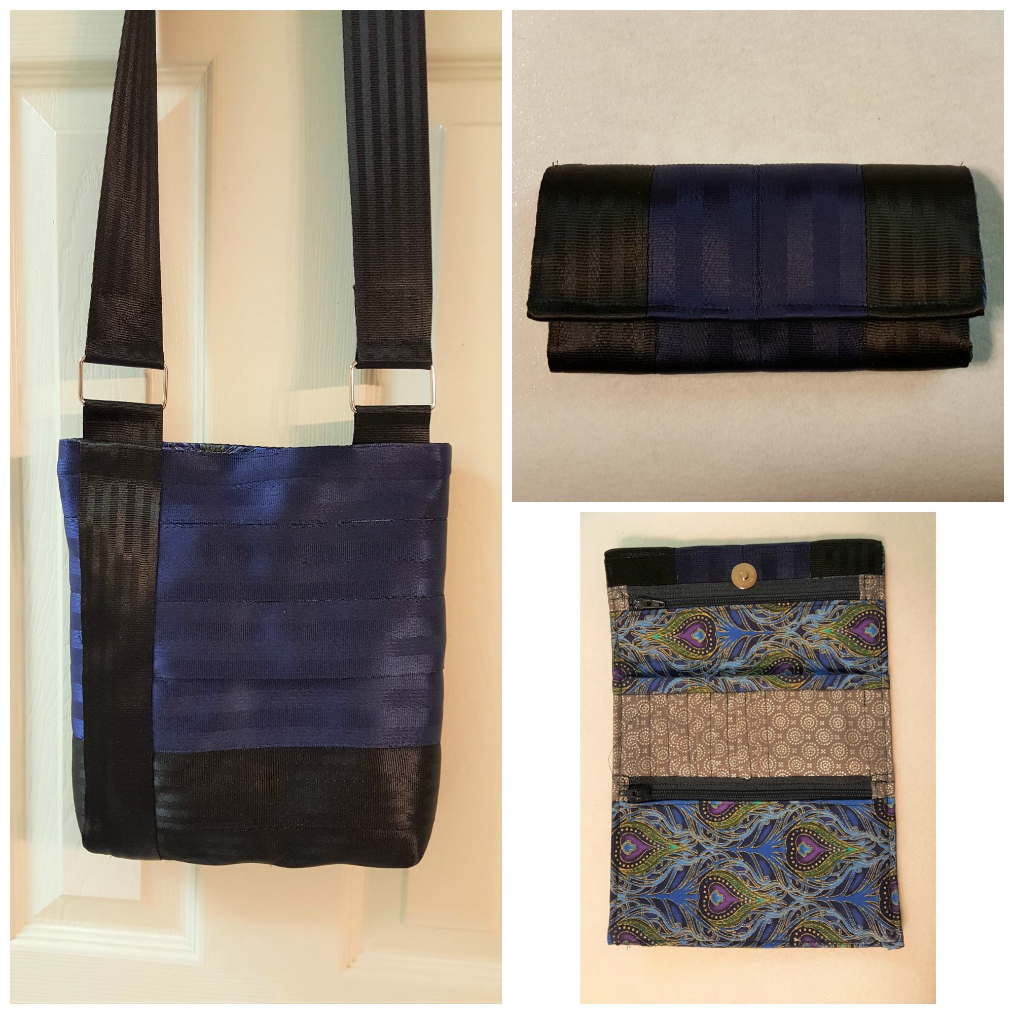 - A stunning crossover bag and trifold wallet combo in dark periwinkle and midnight by Synthia Gerritson