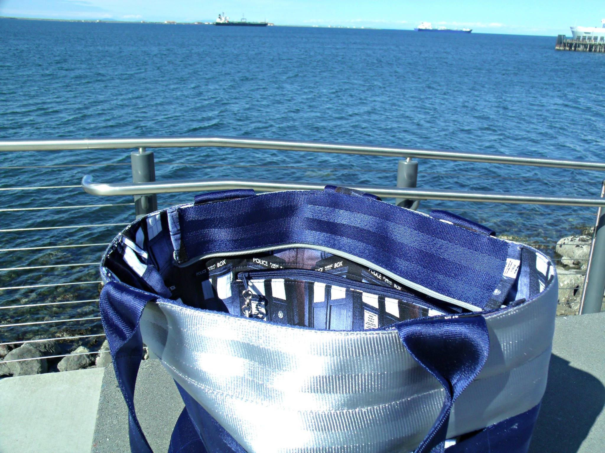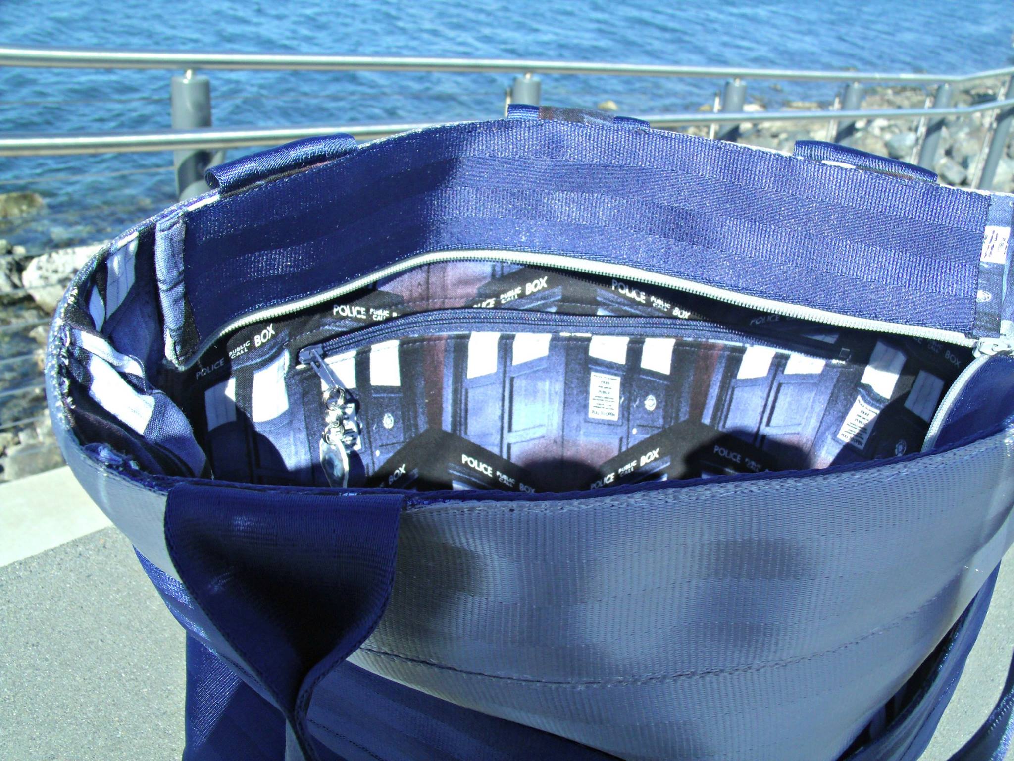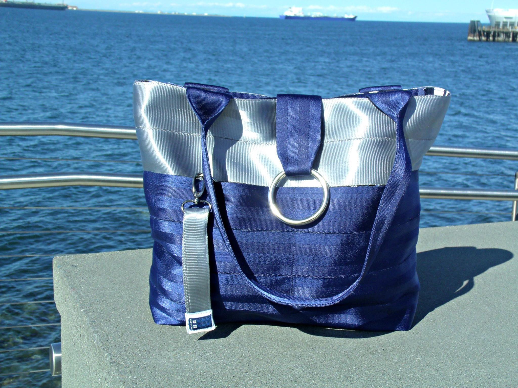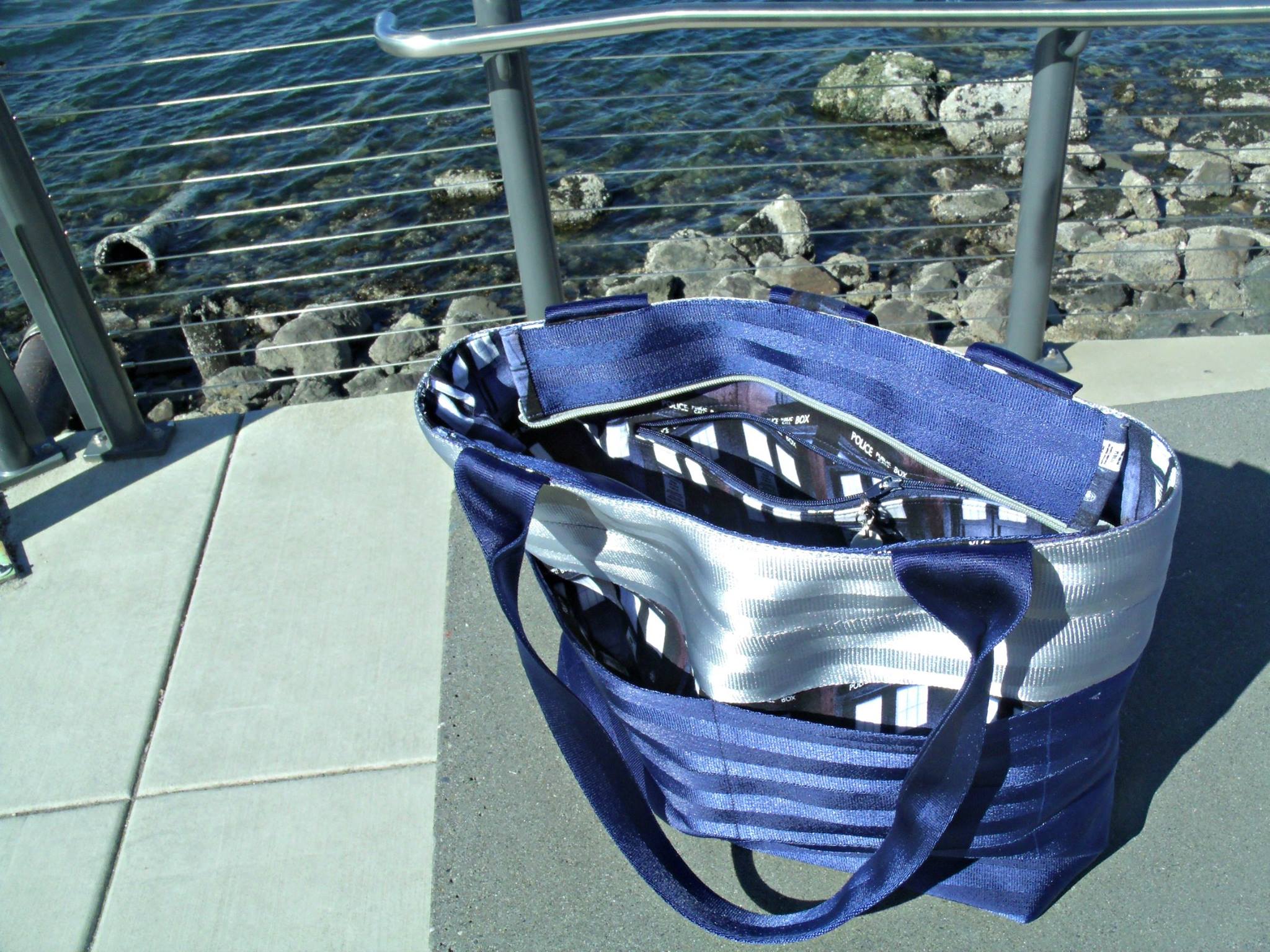 - A beautiful large tote in midnight, stark white and pacific webbing by Debbie D.