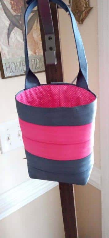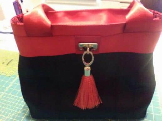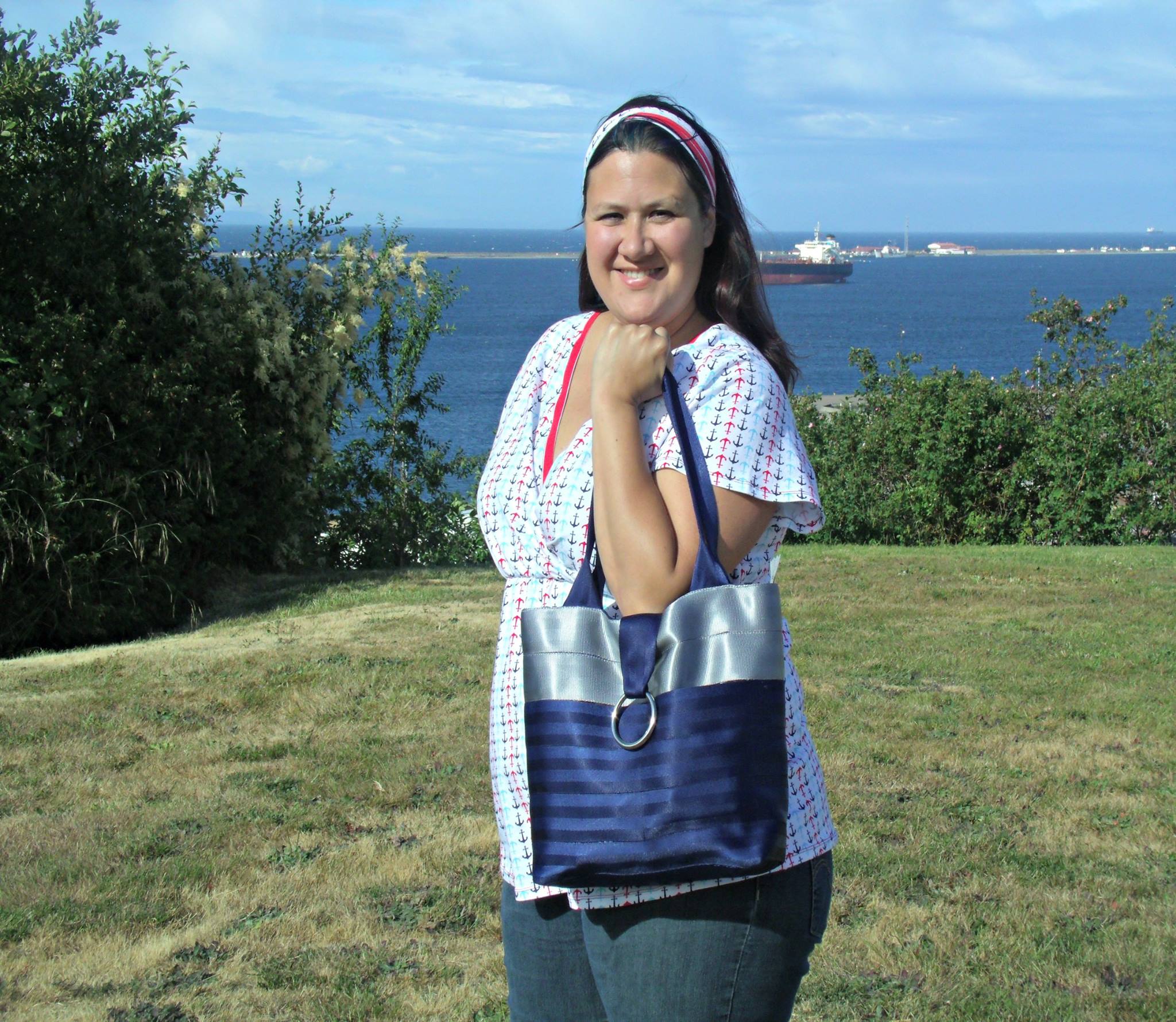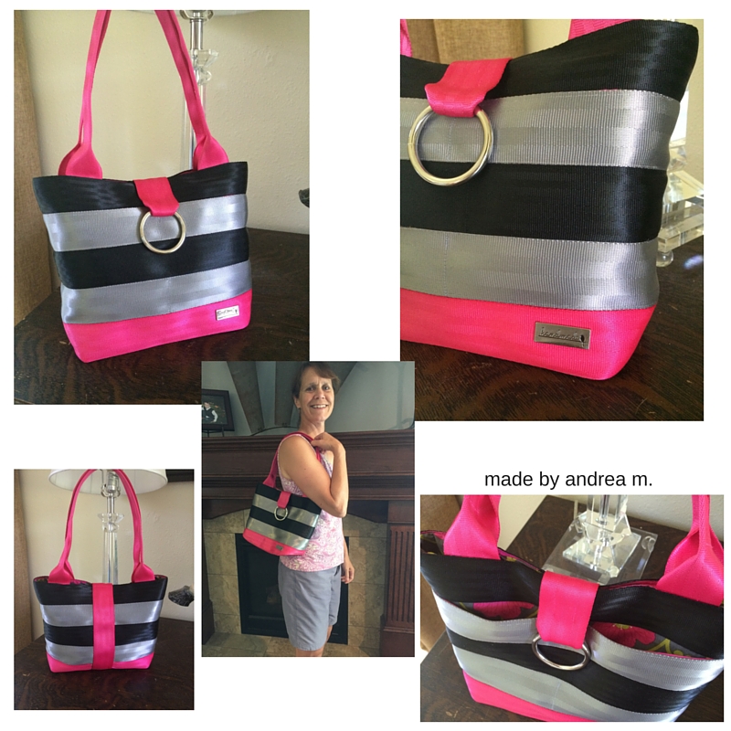 - Would you believe Andrea had never sewn a bag before (or much of anything else!). You sure can’t tell by looking at it. Small size bag in hot pants, midnight and stainless steel