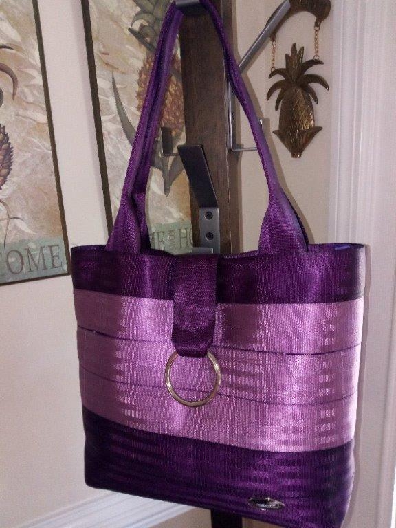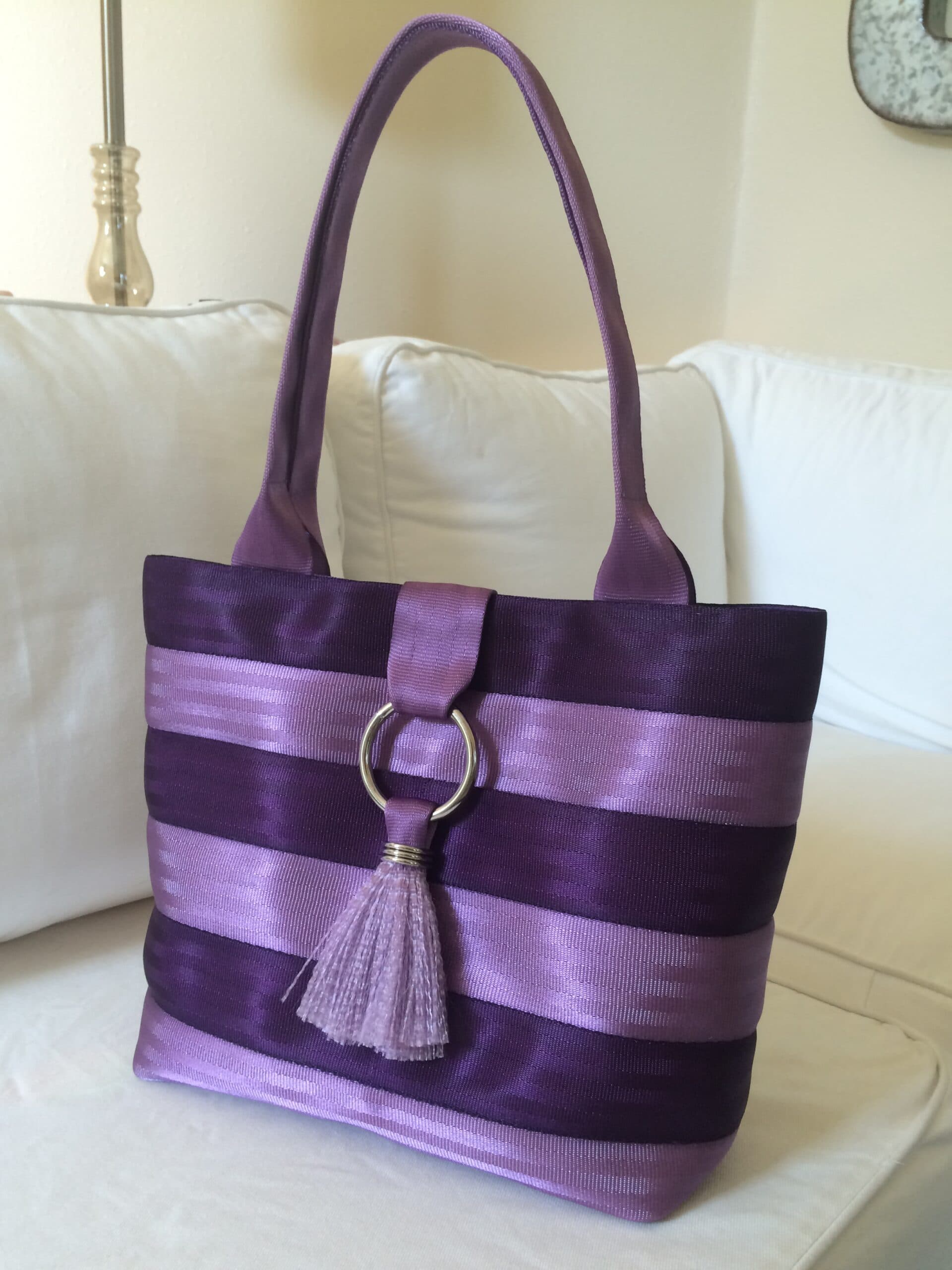 - A medium, striped tote in lilac and aubergine. Made for a k-state fan!