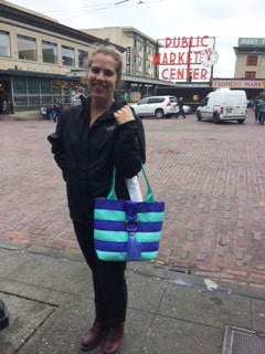 - Karen Parker did a great job on this medium Market Tote in Stark White and Pacific.