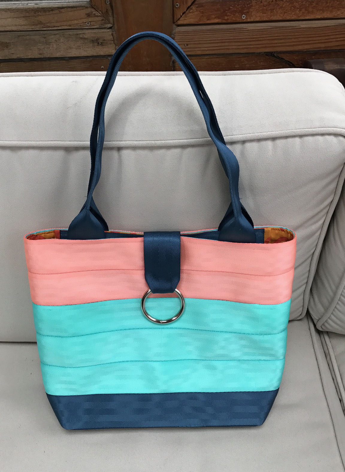 - A fun spring bag by Kristine Ahlskog in coral reef, minty aqua and denim!