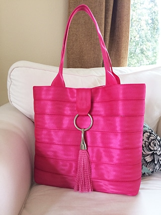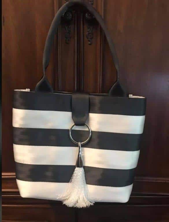 - Norma’s white, lilac and aubergine tote. Great tassel!