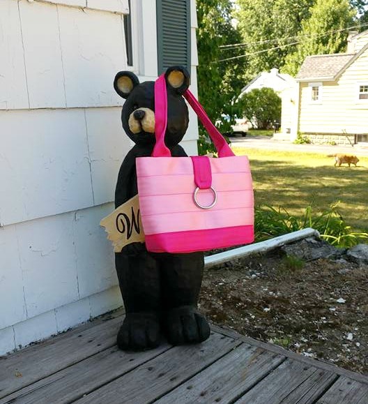 - Un-bear-ably adorable! This tote is in bubblegum and hot pants. Made by Mary Ann Weigand.