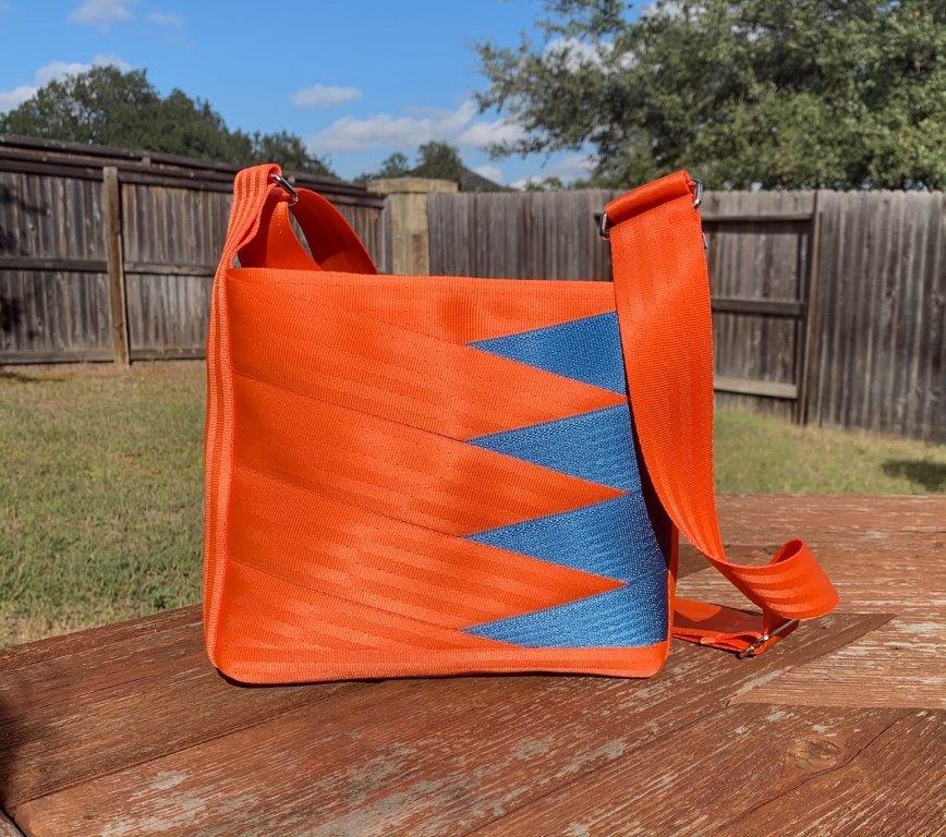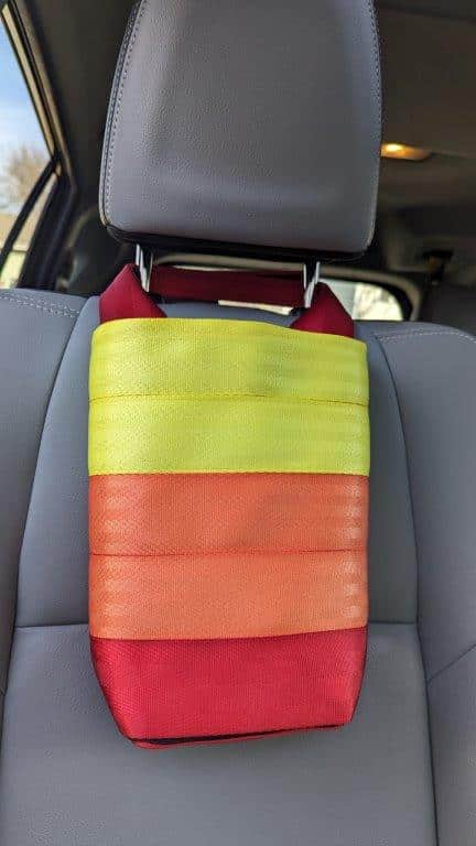 - Motor City Tote in Red Hots, Cloud and True Blue seat belts