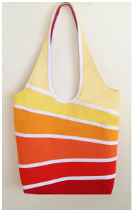 Inspiration is a strange thing. It comes seemingly out of nowhere and never seems to be present when you try to make it happen – it just happens. Like last month when I decided to redecorate my kitchen and took off to the paint store. Now, I’ve seen paint chips a thousand times, in fact, I have painted some rooms in my house so many times, I am starting to lose square footage! But that day, looking at all those pretty paint chips, I was inspired and I came home and designed this: The Spectrum Tote…